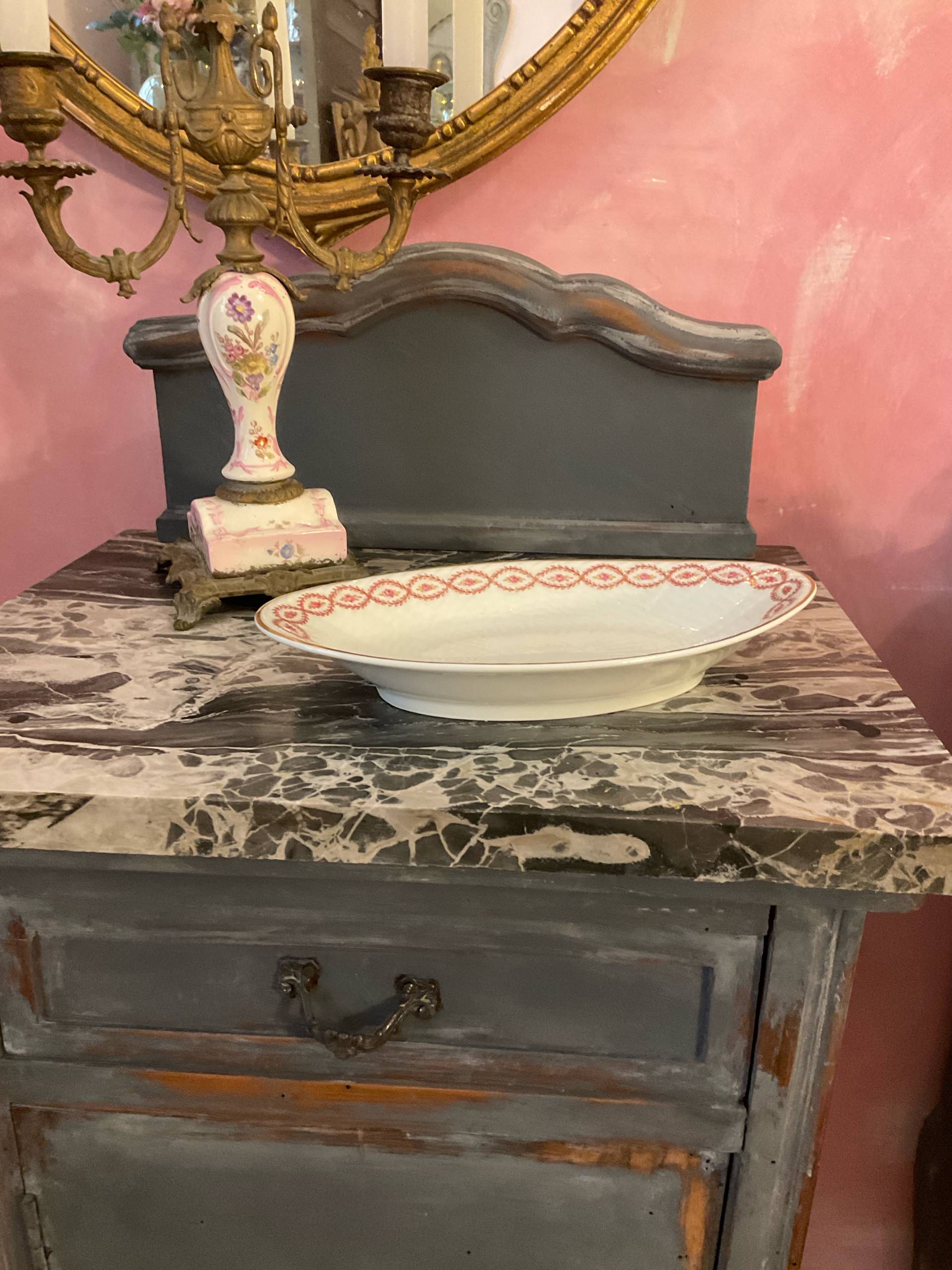larghezza del piano di marmo 43 cm – profondità 35,5 cm – altezza inclusa l’alzata 92 cm